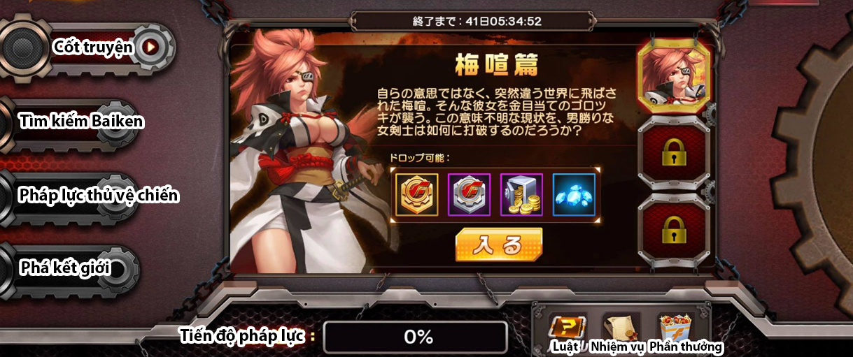 -Thời gian: từ 28/9 đến hết 8/11-Bao gồm 4 mục “Cốt truyện”, “Tìm kiếm Baiken”, “Pháp lực thủ vệ chiến”, “Phá kết giới”.